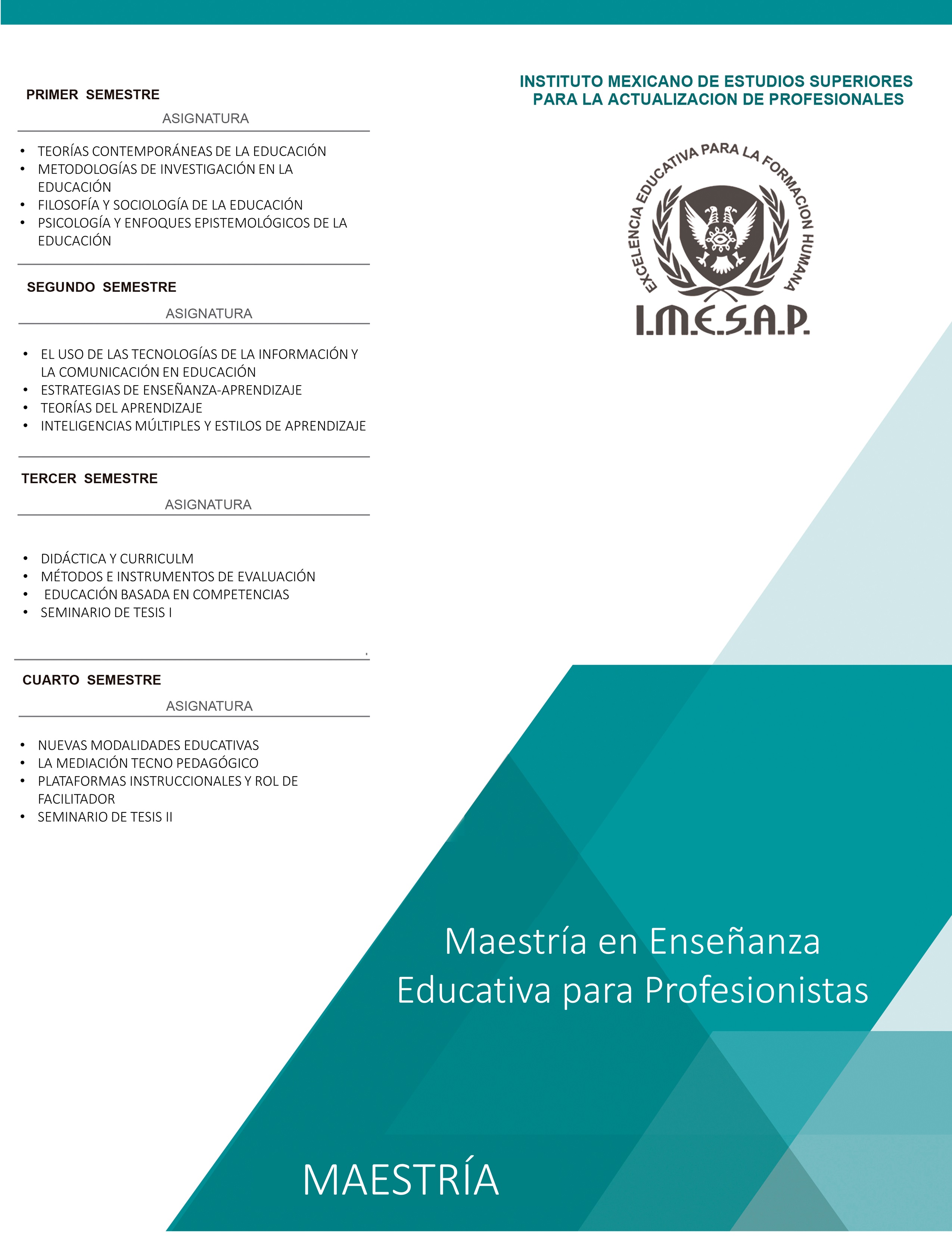 - Correo electrónico: informes@imesap.edu.mx